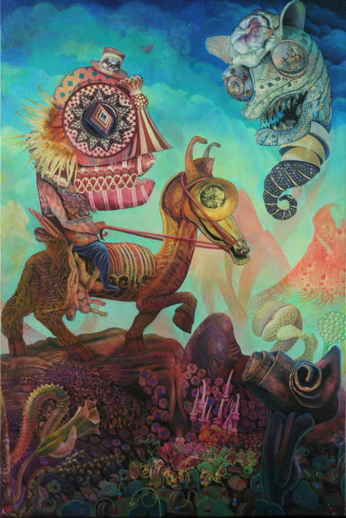 David Ball PilgrimCollage, acrylic and colored-pencil on panel.