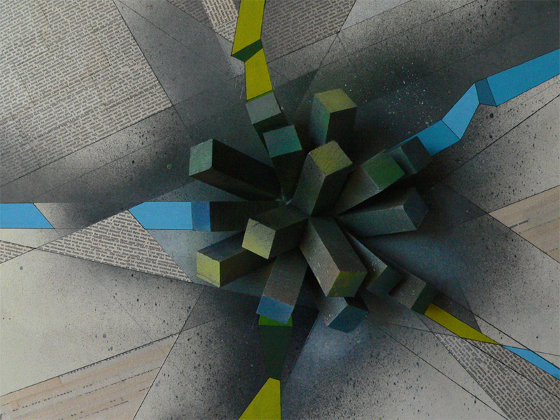 Geoff Campen and Diana Ruiz Granite Quarries For The Next Ten YearsInk, aerosol, and collage. 16 in. x 20 in.