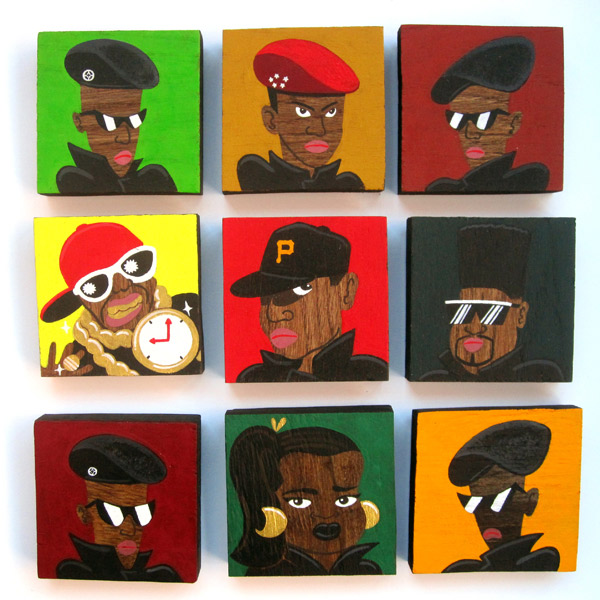 Andy StattmillerPublic Enemy Gouache on wood. 3.5 in. x 3.5 in. (x9)
