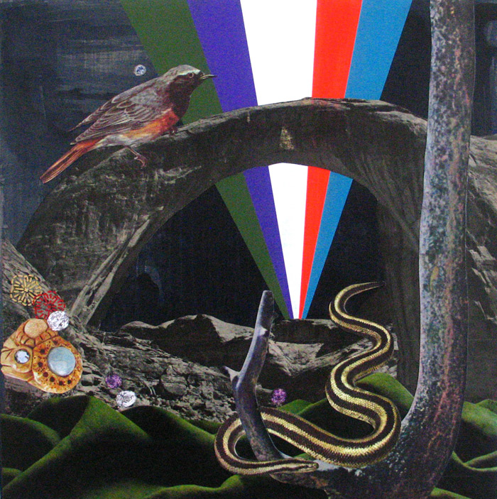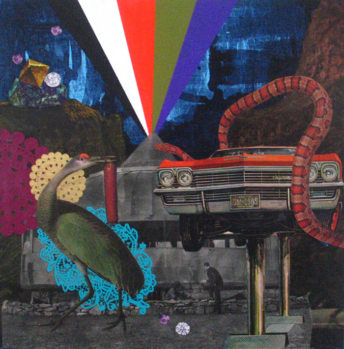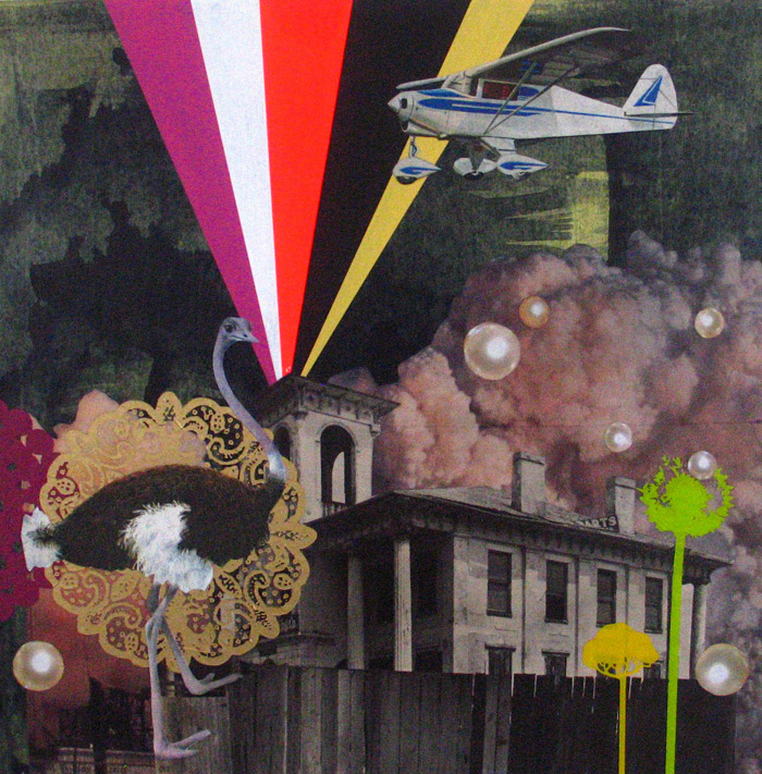 Maureen ShieldsTemporary ExplosionsAcrylic and collage on wood. 10 in. x 10 in.